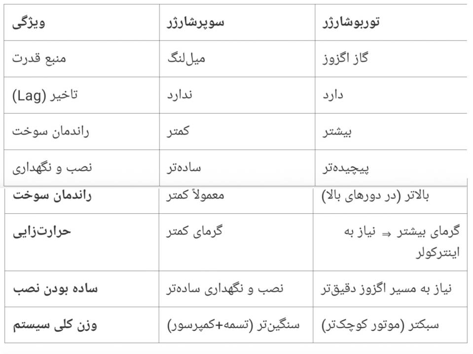 خودروهای سنگین یا خطوط امداد ⇒ سوپرشارژر بهخاطر پاسخ بیدرنگ
